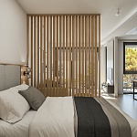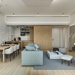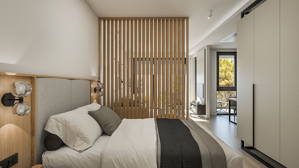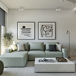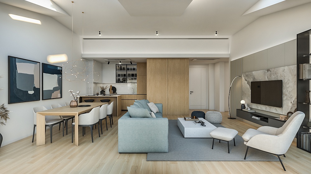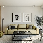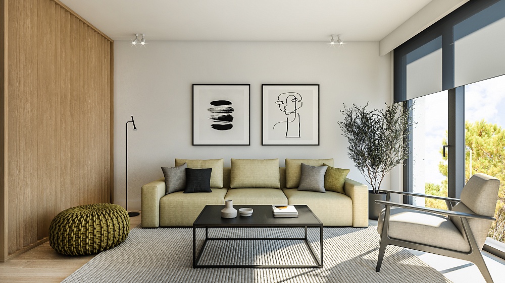 Все апартаменты полностью меблированы по высоким современным стандартам, в натуральных тонах, с большим количеством естественного света, в отделке использованы натуральные материалы. Апартаменты оборудованы Smart системами отопления и охлаждения Samsung wind-free и теплым полом. Итальянская керамика Florim, сантехника Geberit, HansGrohe, ACO. Мебель изготавливается на заказ из материалов ведущих европейских брендов Egger и Fundermax.