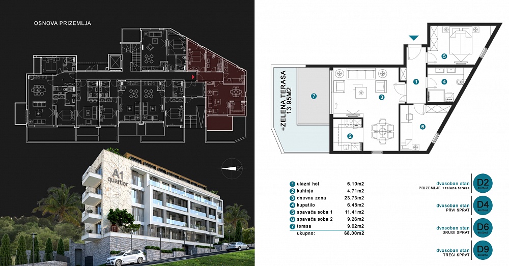 D4, 2 спальни, 67 м2, — 127,300 евро