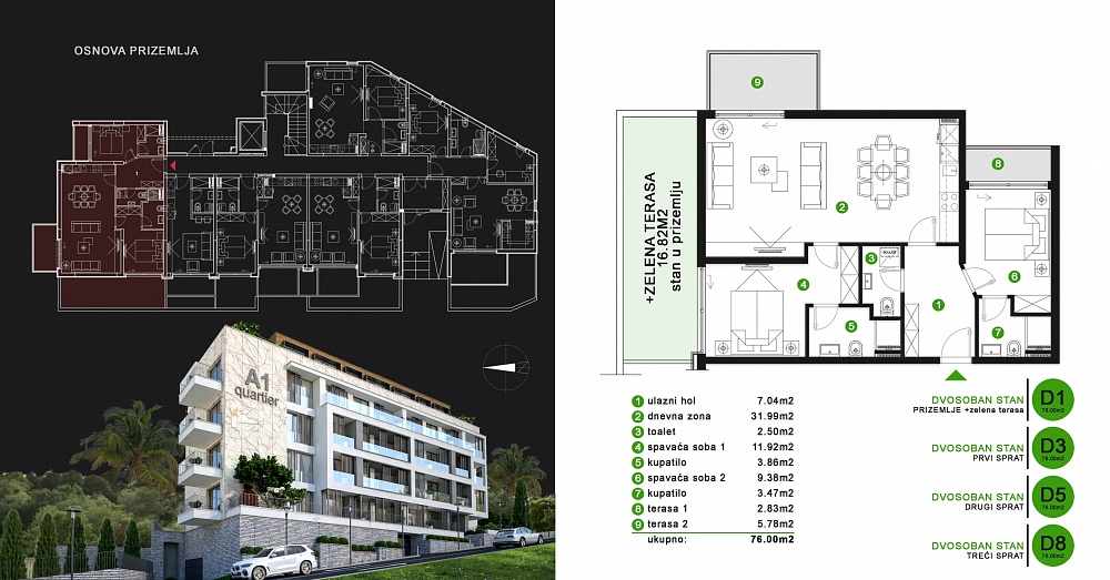 D5, 2 спальни, 76 м2 — 174,800 евро