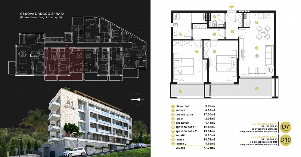 D7, 2 спальни, 77 м2, — 177,100 евро
