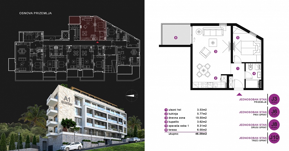 J10, 1 спальня, 46 м2, — 87,400 евро