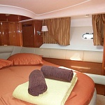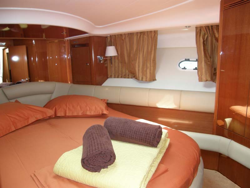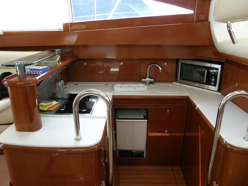 Кондиционер, автопилот, ТВ, CD-радио-плеер, горячая вода, холодильник, розетка 12в, розетка 220в, лестница для спуска в море, трап, палубный душ, газовая плитка с духовкой, микроволновая печь, лёдогенератор.